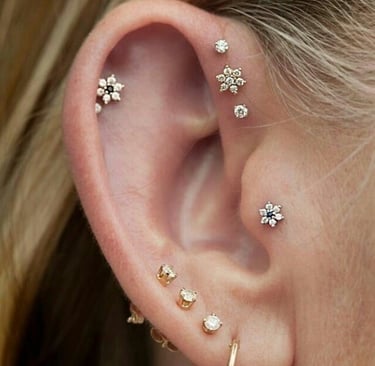 Piercing is a form of body art where a needle is used to create an opening for jewelry. Common areas include ears, nose, eyebrows, and navel. It's a popular way to express personal style and individuality.